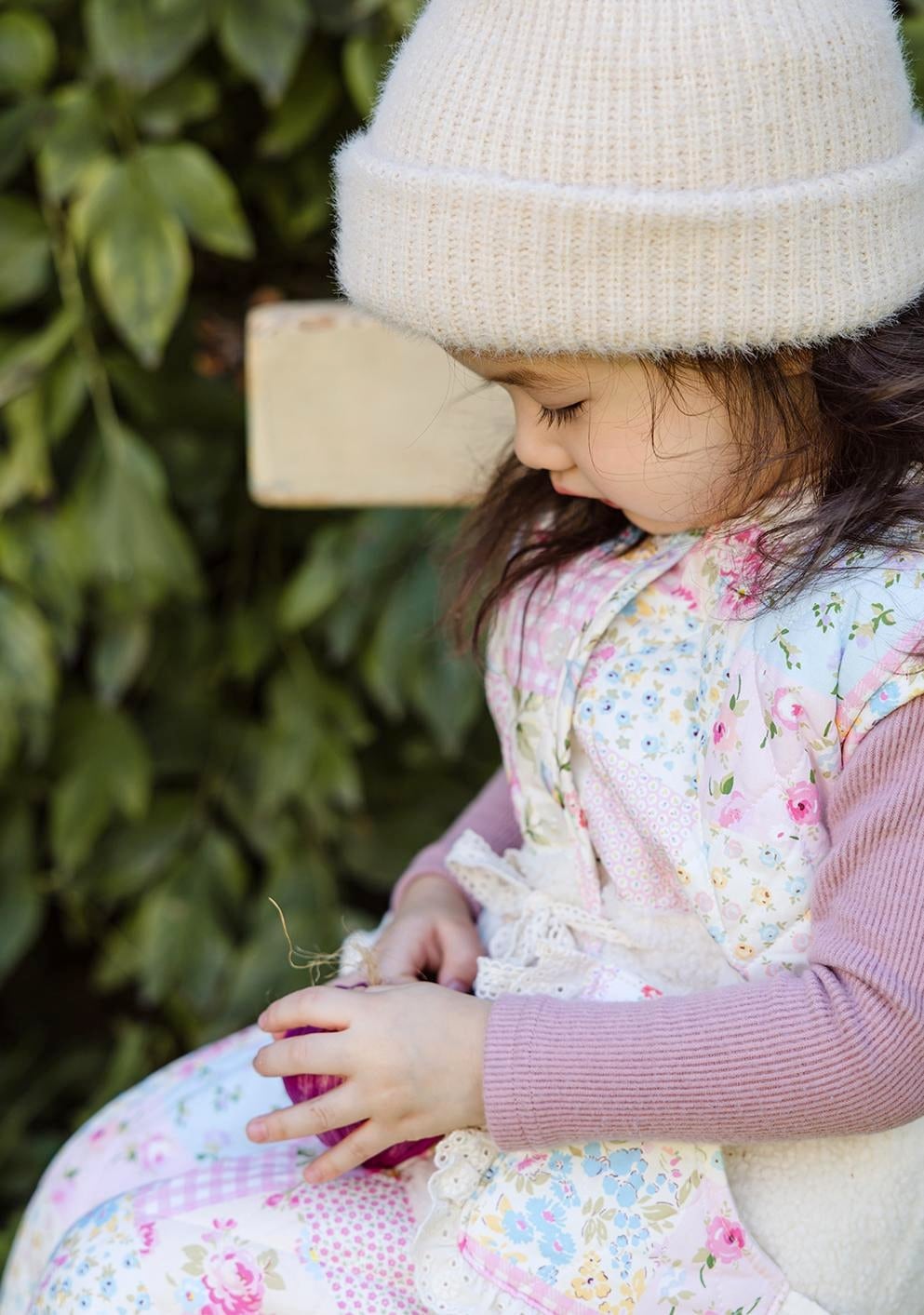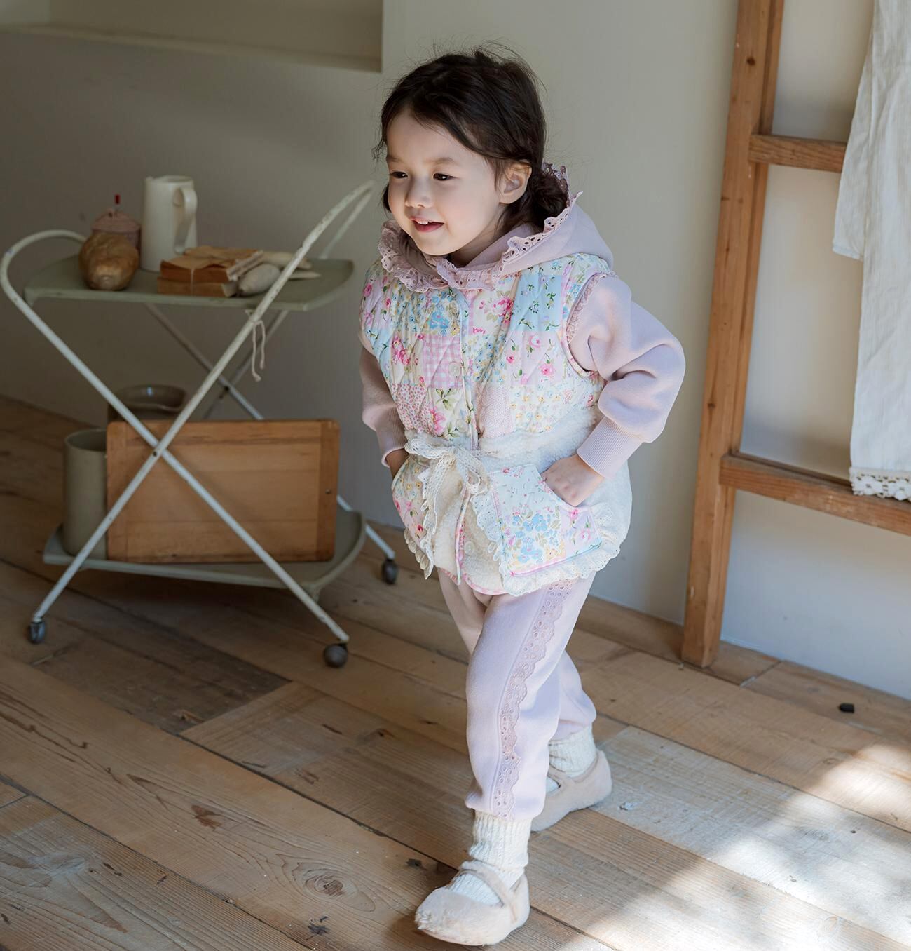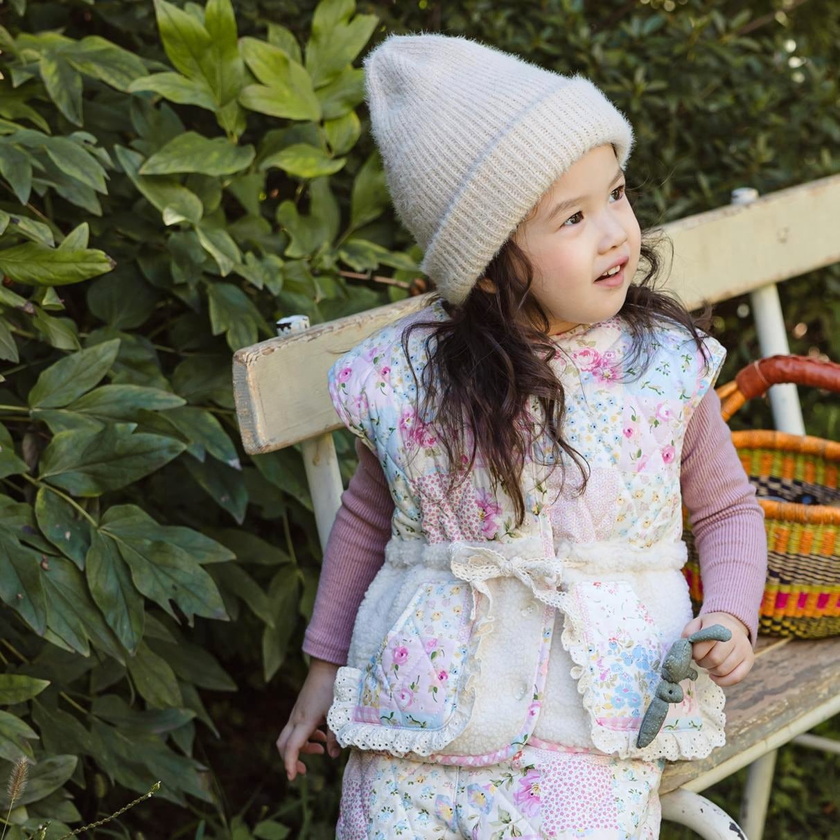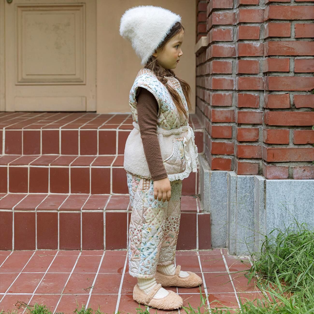 パッチワークとモコモコ素材が存在感ばっちりなキルティングベストです。
