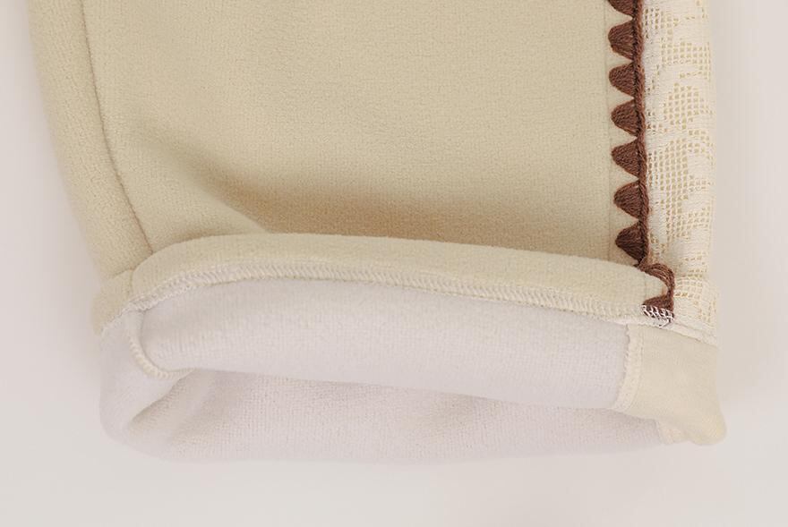 程よいワイドシルエットにサイドのレース飾りがロマンチックな印象のフリースパンツです。