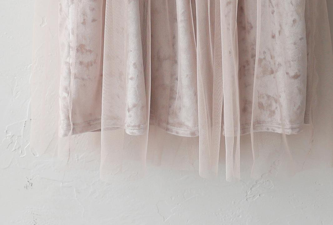 チュチュの裾広がりなスカートのシルエットが、女の子らしい雰囲気を着こなしに演出します。