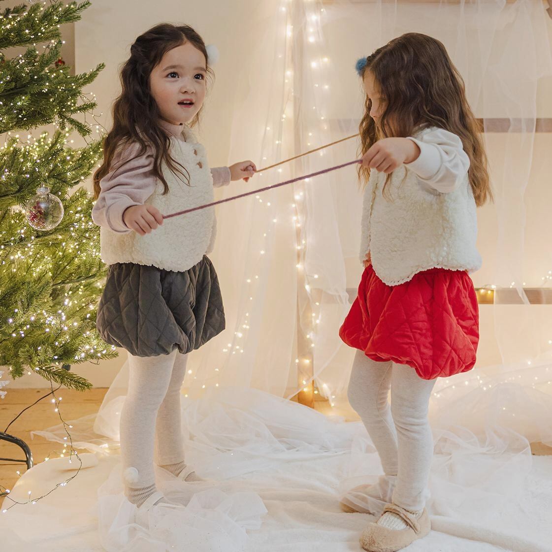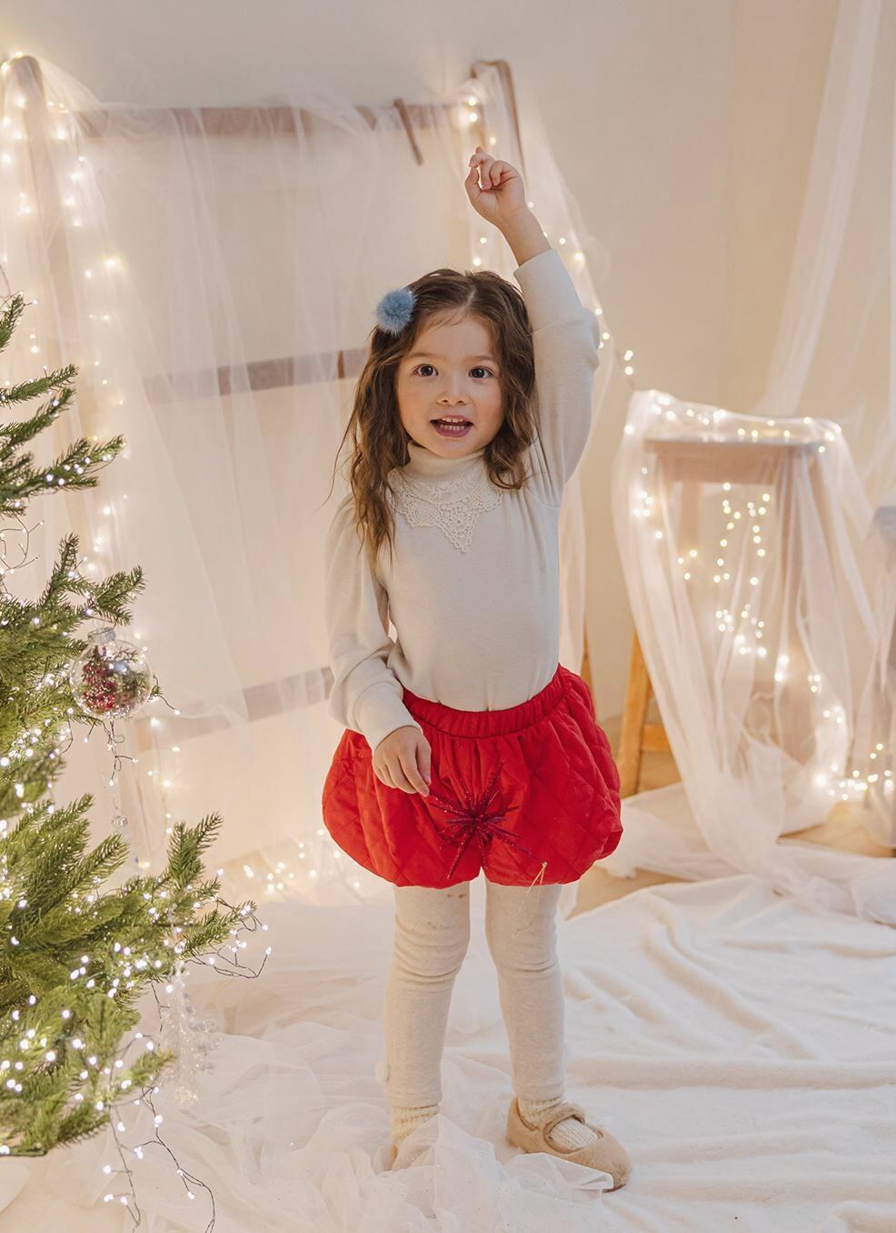 ポンポンの飾りがポイントでワンピースやスカートのコーデに欠かせない一枚あると便利なアイテムです。