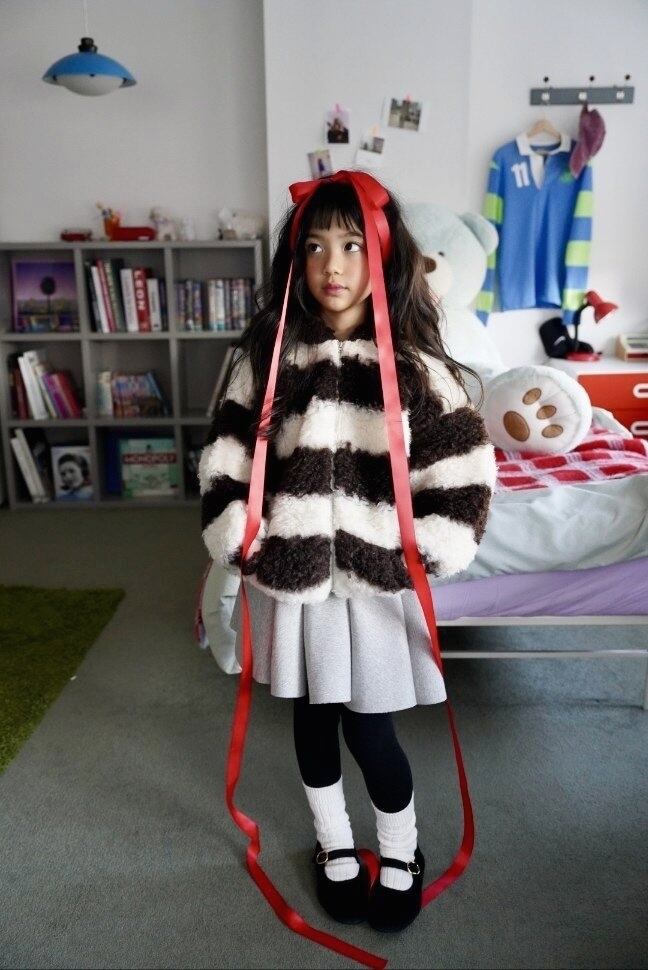 冬らしいスウェット素材を使用し、Aラインのシルエットが女の子らしい雰囲気を着こなしに演出します。