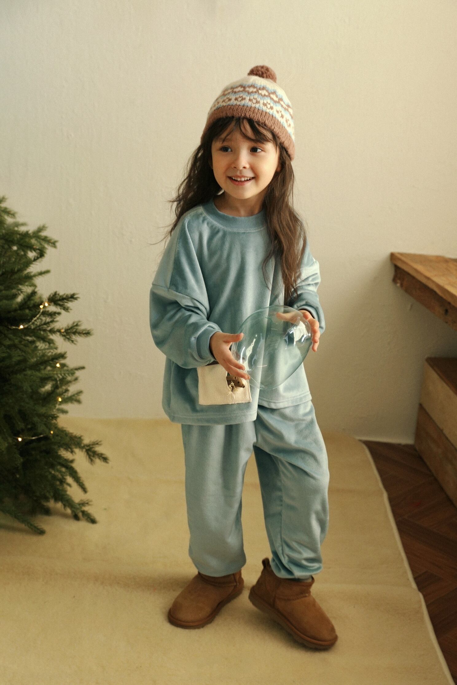 滑らかなベロア素材を使用しリラックス感のあるシルエットで優しくライトな着心地に仕上がっています。