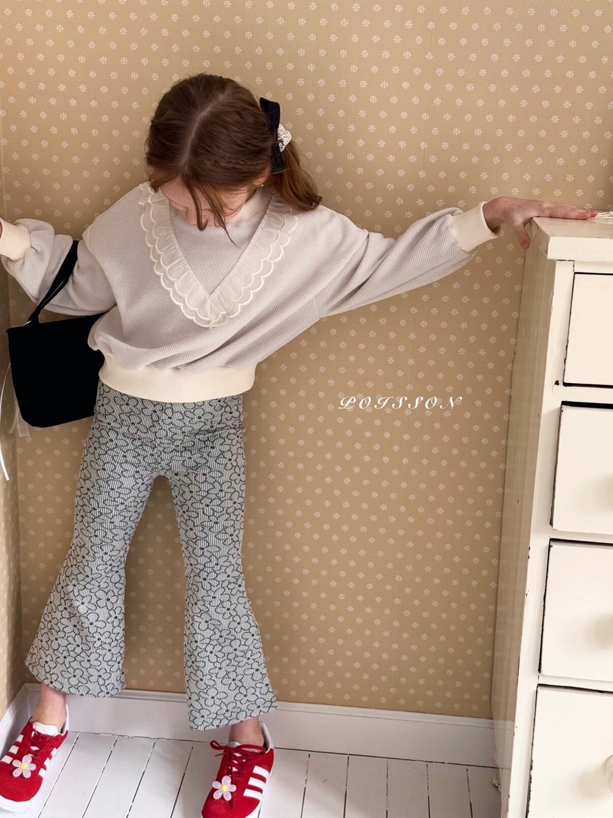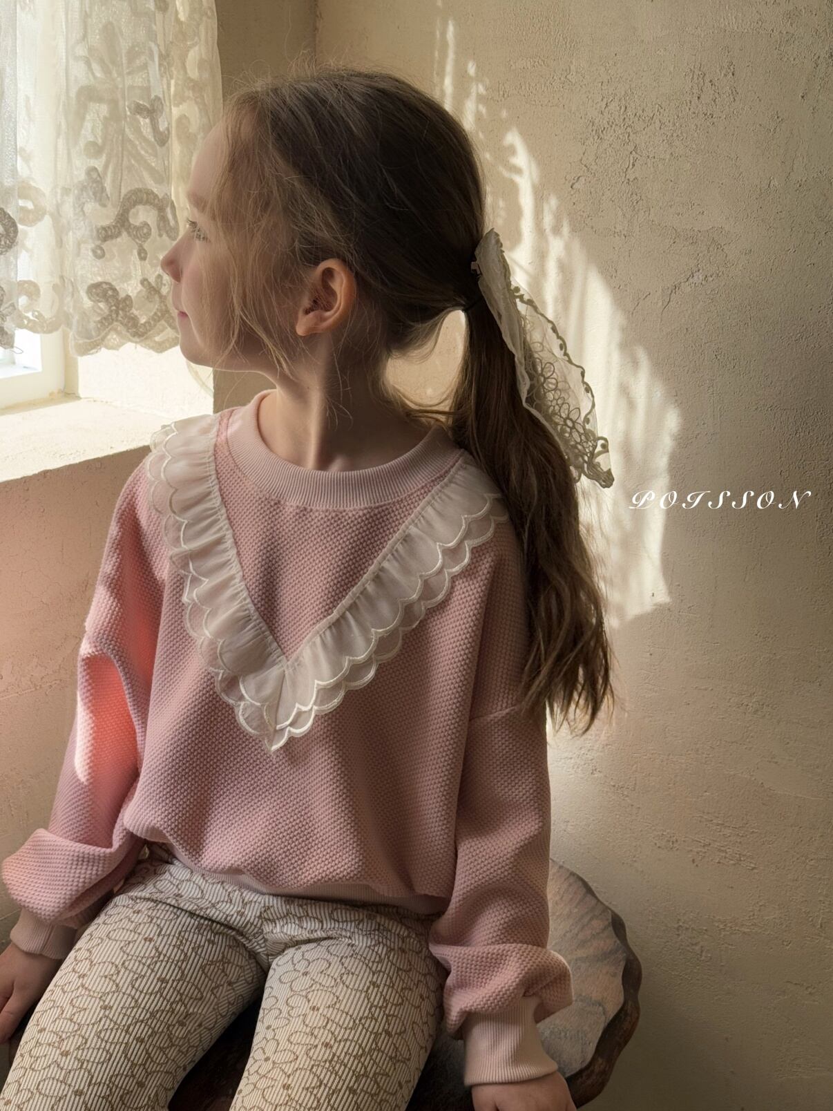 肌なじみのあるコットンワッフル素材でレースのVラインがレトロ感のあるスウェットです。