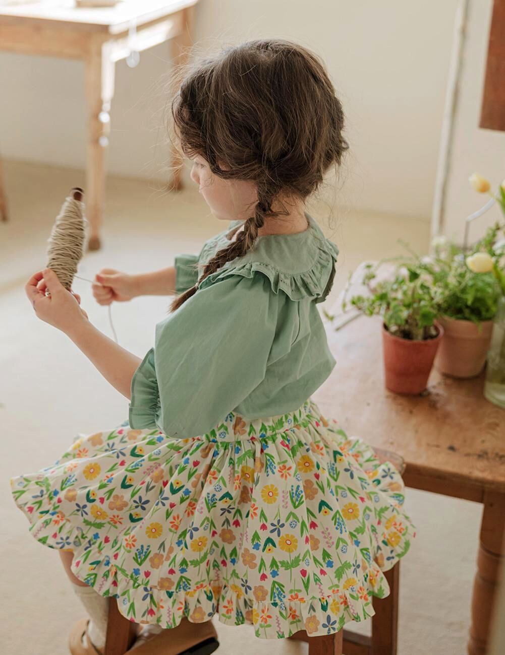 floのスカート、パンツをあわせてあげたらロマンチックなコンディネートのできあがりです。