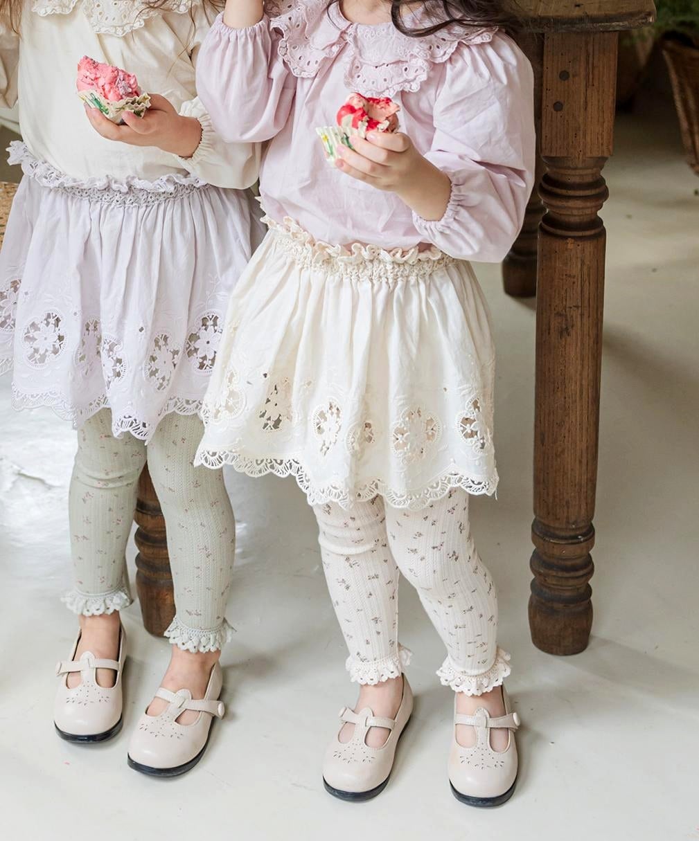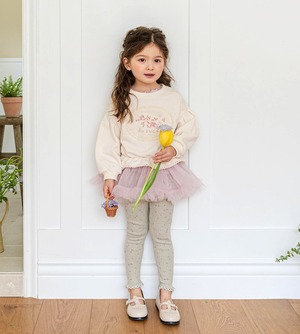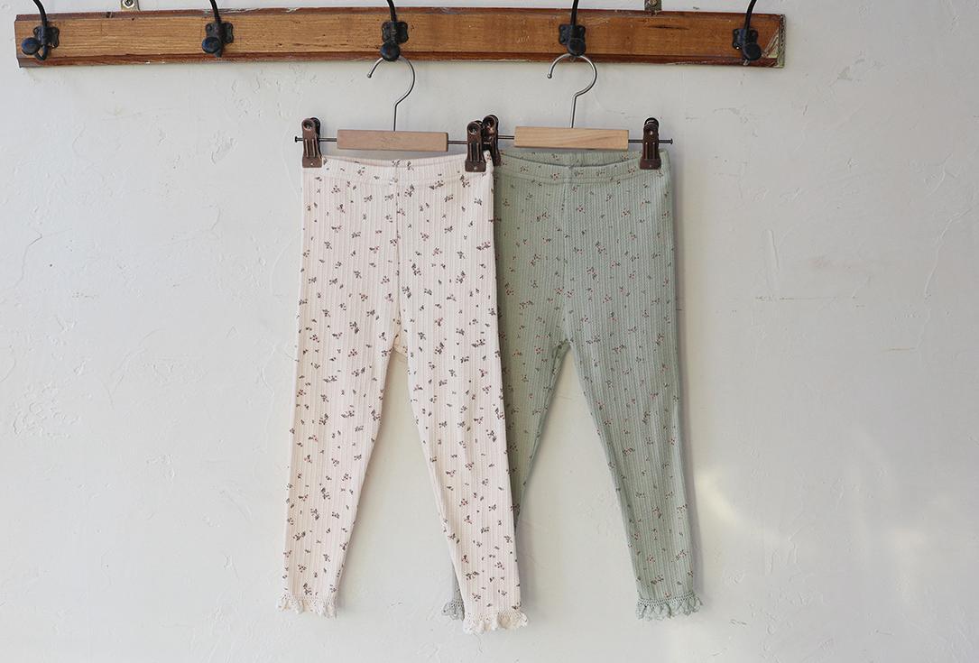 花柄のコットンリブ素材を使用したやわらかく、伸びがいいレギンスです。