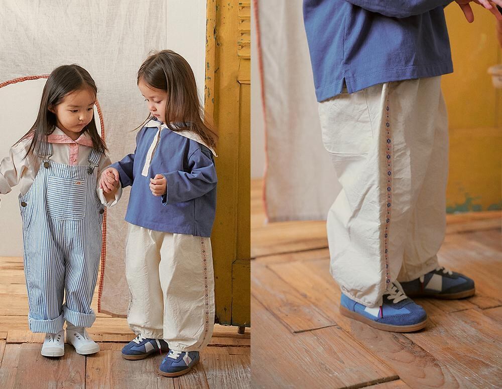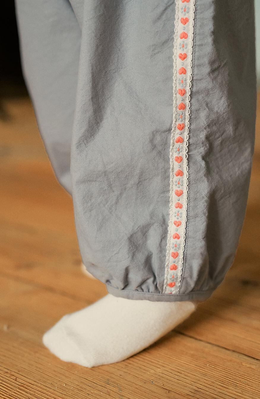 程よいパンプキンシルエットにサイドのレースデザインがロマンチックな印象のコットンパンツです。